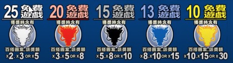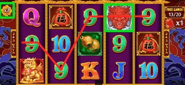 若選擇了紅色龍,共可進行20次免費遊戲。遊戲中的任意圖案