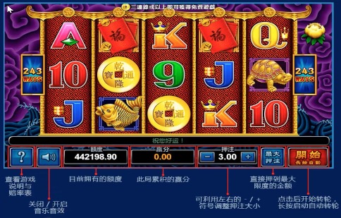 當中銅幣三連線以上時則可進入免費遊戲,玩家可選擇想要的免費局數及倍數。